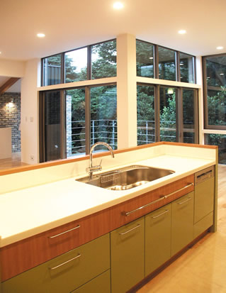 ・ 沢山の窓を配置したリビングは、緑豊かな 木々が囲み、都会暮らしとは思えないほどの 癒しの空間に
